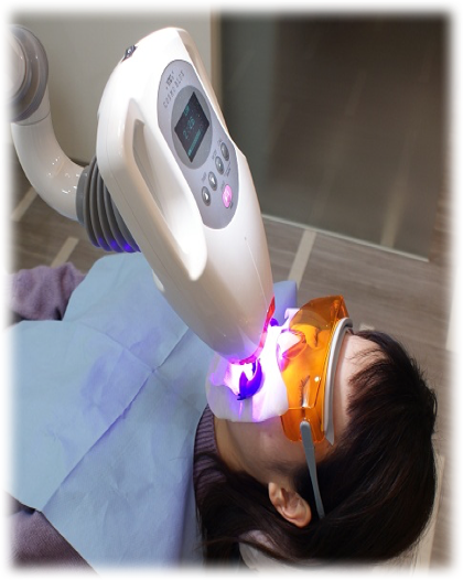 ホワイトニングは、Tion(オフィス)と専用の照射器コスモブルーを使用しています。